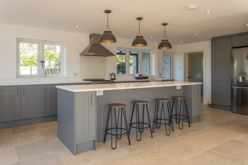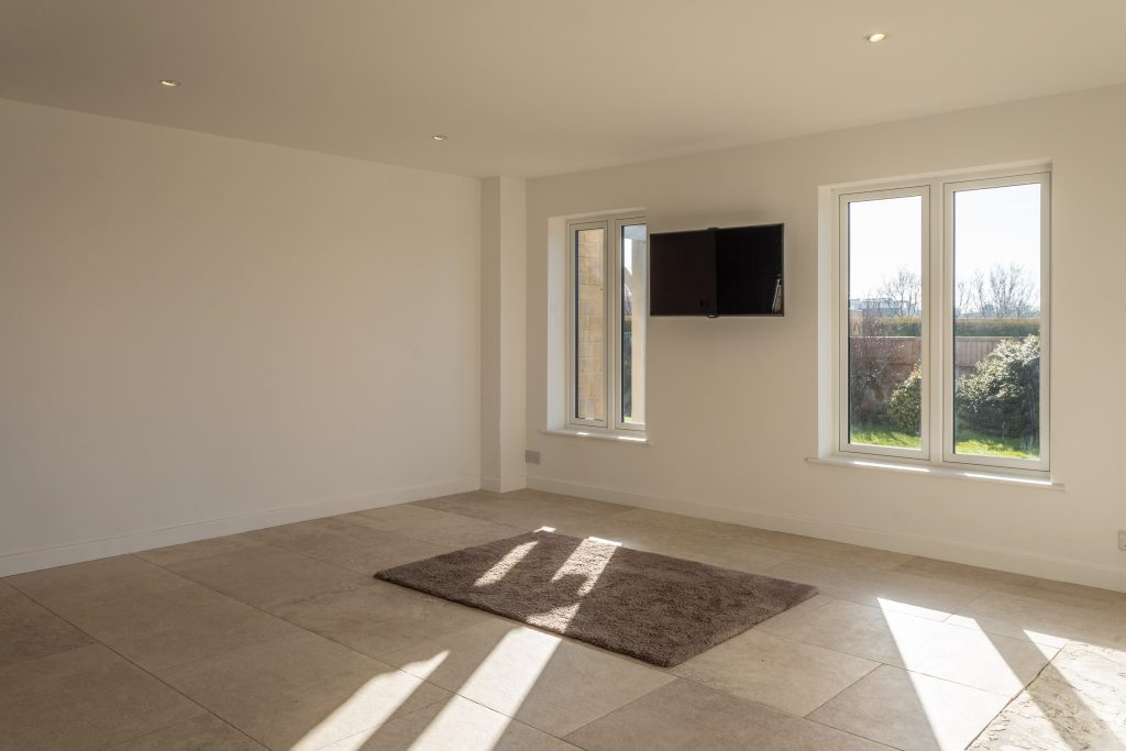 A downstairs bathroom, snug room, utility room and a unique home gym that tailored to the customers preference. We then extended and created this stunning open plan spacious kitchen / dining area that captures the sun from dust till dawn with amazing views of the Malmesbury area.
